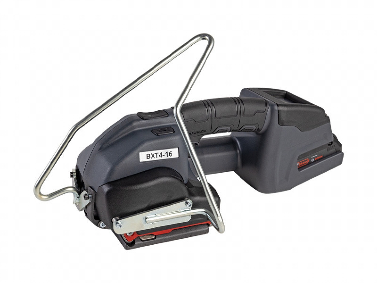 Akumulátorový páskovací stroj určený na PP a PET pásky o rozměrech 12 - 13 - 15 - 16 mm a tloušťky pásky 0,5 mm až 1,0 mm. Pásky spojuje vibračním svařováním. Napínání pásky se provádí elektromotorem. Stroj je vybavený akumulátorem Bosch typu Li-Ion 18 V, 4 Ah. Nabití akumulátoru nabíječkou BOSCH trvá cca. 20 až 45 minut. Nejkvalitnější akumulátorová páskovačka na trhu. Vyvážená, odolná konstrukce a jednoduchá obsluha. Nové elektronické otevírání pro založení pásky pomocí technologie EasyTriggerTM. Technologie EasyTriggerTM zajišťuje ergonomické a efektivní ovládání, které snižuje zátěž uživatele. Intuitivní ovládání prostřednictvím displeje pro široký rozsah aplikací. Podle volby obsluhy může páskovačka pracovat v režimu manuál / poloautomat /automat .