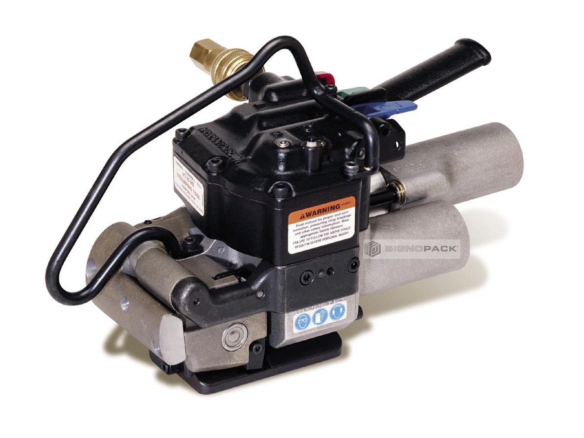 Ruční pneumatický páskovací stroj určený na polyesterové pásky o rozměru 32 mm a max. tloušťky 1,27 mm. Spoj pásek je proveden vibračním svarem. Doba svařování pásky a doba chlazení svaru se nastavuje mechanickým časovým spínačem. Stroj je vybaven 2 pneumatickými motory . Jeden motor je určen k utahování pásky, druhý motor slouží k vybračnímu svaření pásek.