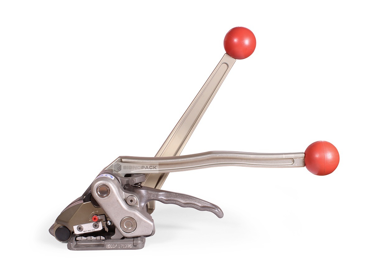 ruční páskovací stroj na ocelovou pásku. Je určena na standardní ocelovou pásku šíře 13 – 16 - 19 mm, max. tloušťka 0,63 mm. Výhodou tohoto stroje je, že prostřižení pásky probíhá postupně nikoliv najednou. Tím vznikají menší tlaky ve stroji a stroj vydrží déle. A obsluha potřebuje meněí sílu na prostřižení pásky. Spojení pásky je provedeno trojitým průstřihem bez použití spony. Pro správnou funkci stroje je zapotřebí, aby stroj při páskování ležel na rovné ploše, která má délku min 20 cm. Stroj SCL je určen pro horizontální i vertikální páskování, má hmotnost pouze 3,5 kg a vyvine utahovací sílu až 6.500 N.